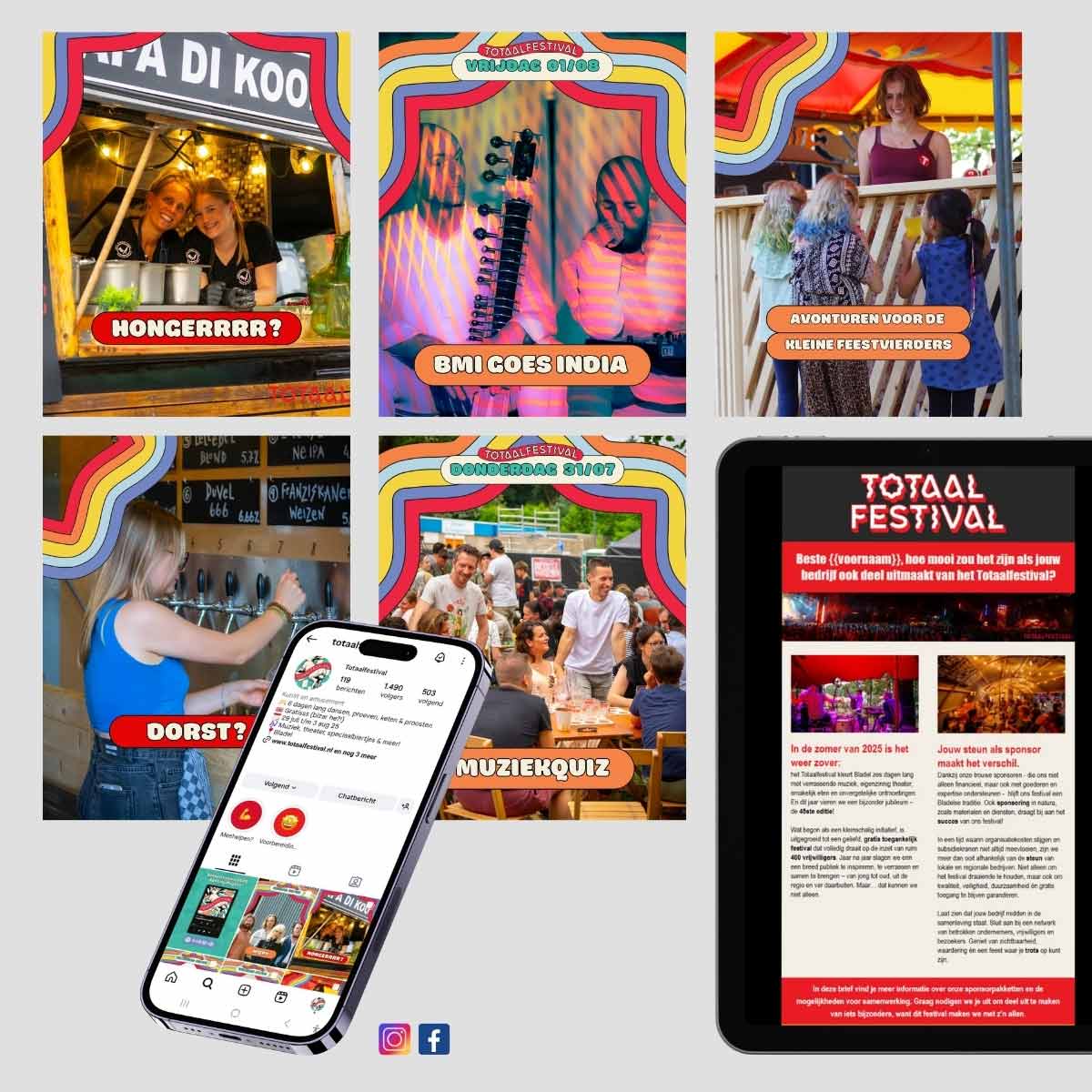 Offline en online reclame zoals een website, nieuwsbrief en social media content.